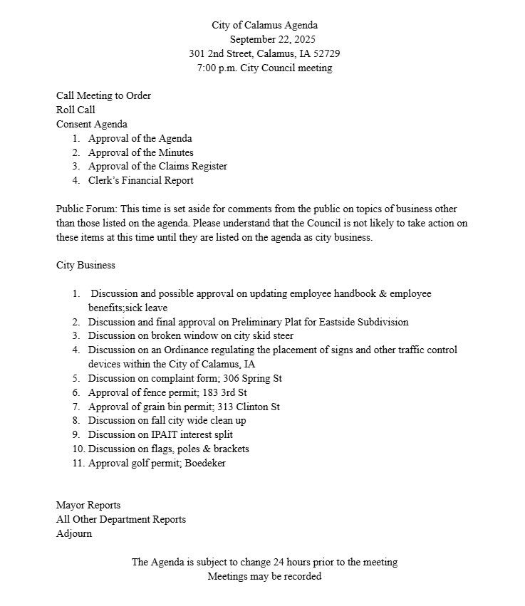 May 21st, 2024 Agenda & Public Hearing Notice Lot 2 Rose Hill Addition & Public Hearing 104 Railroad Street